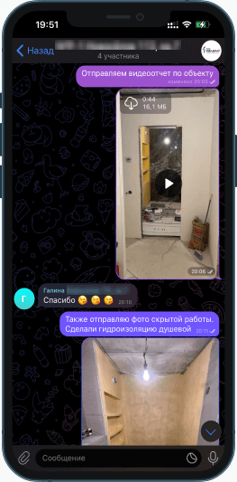 Каждую неделю прораб направляет отчет о проделанной работе и результатах. Так же по требованию вы можете запросить отчет сами.